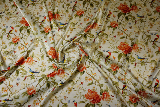 italienische Seide, florales Meisterwerk mit exotischen Vögeln