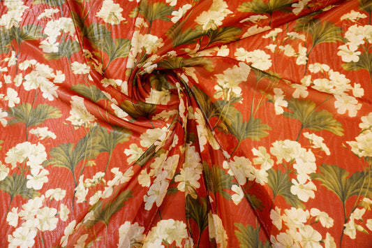 floraler Seidenchiffon auf warmem Rot