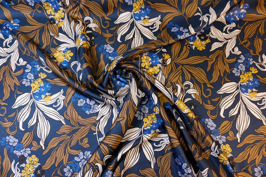 italienischer Seidentwill mit kunstvollen Blüten