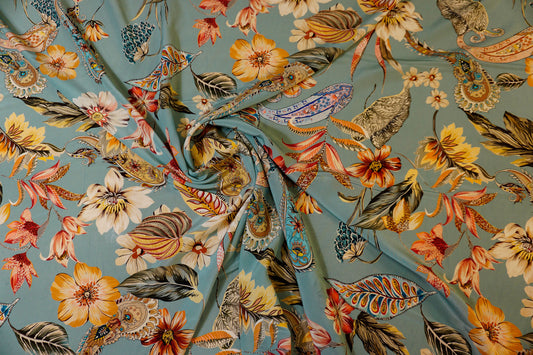 Seiden-Crêpe mit floralem Paisley-Design