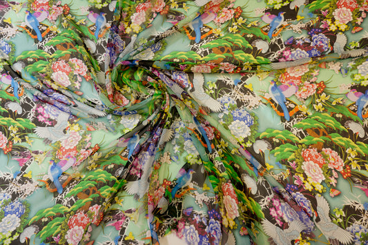 Seidenchiffon mit kunstvollem Kranichdruck