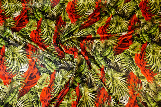 Seidenjacquard – tropisches Design mit edlem Schimmer