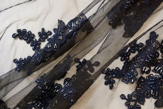 dunkelblaue Tüllspitze mit Perlen – Eleganz & Luxus