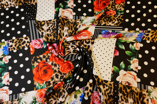 Auffälliger Viskosestoff mit Patchwork-Design – elegant & extravagant