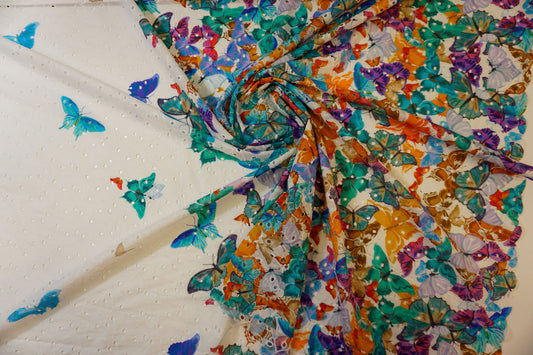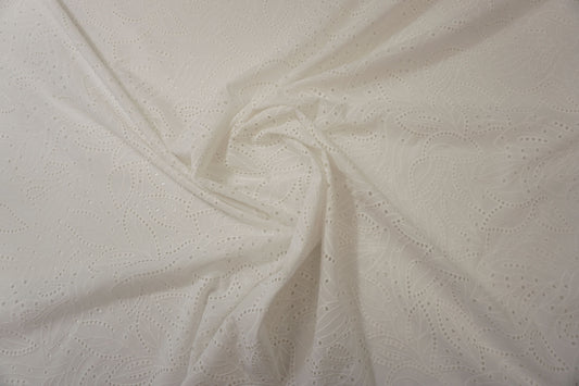Elegant cotton eyelet embroidery with delicate leaf motif