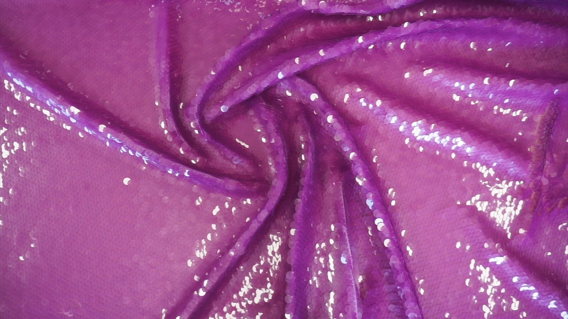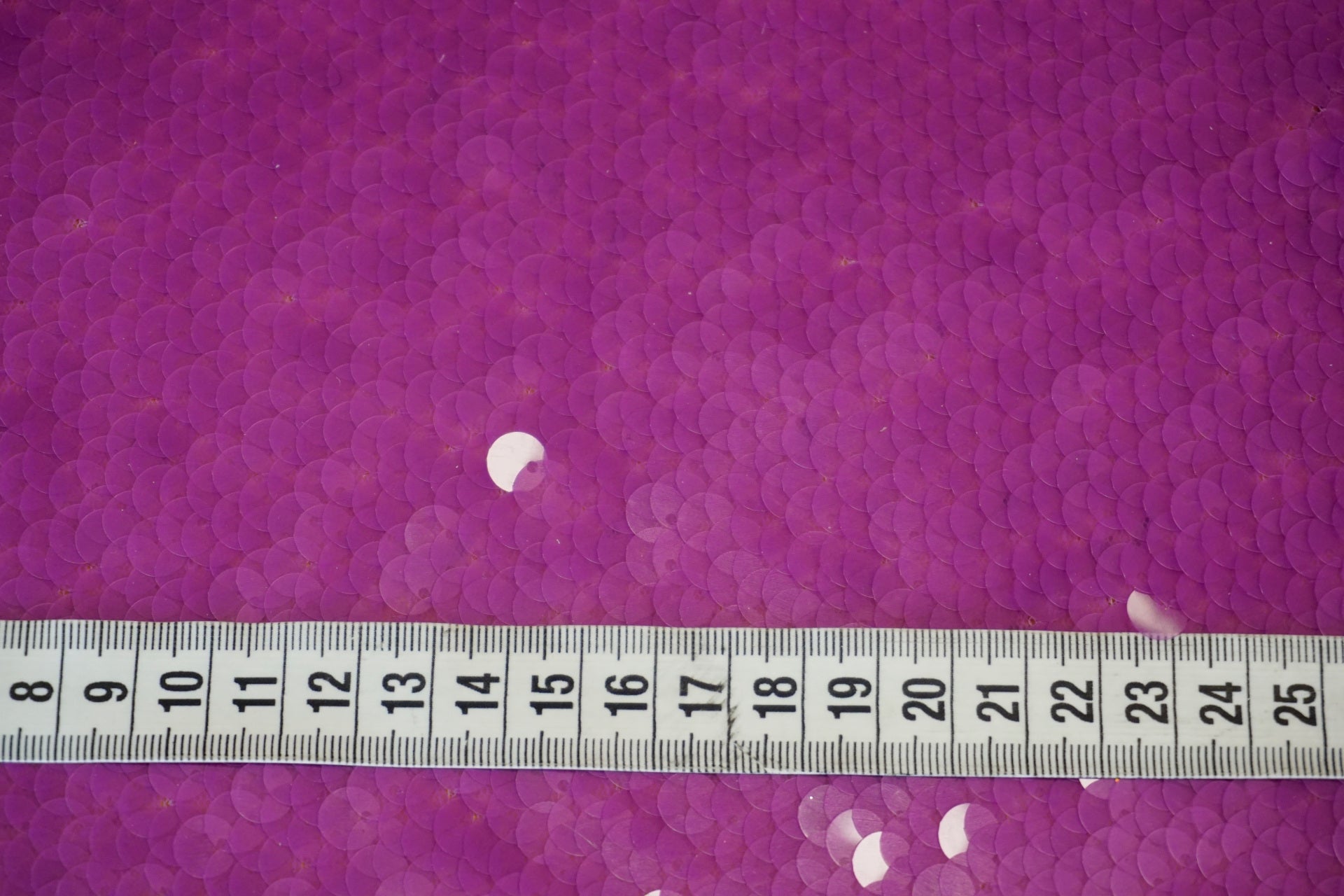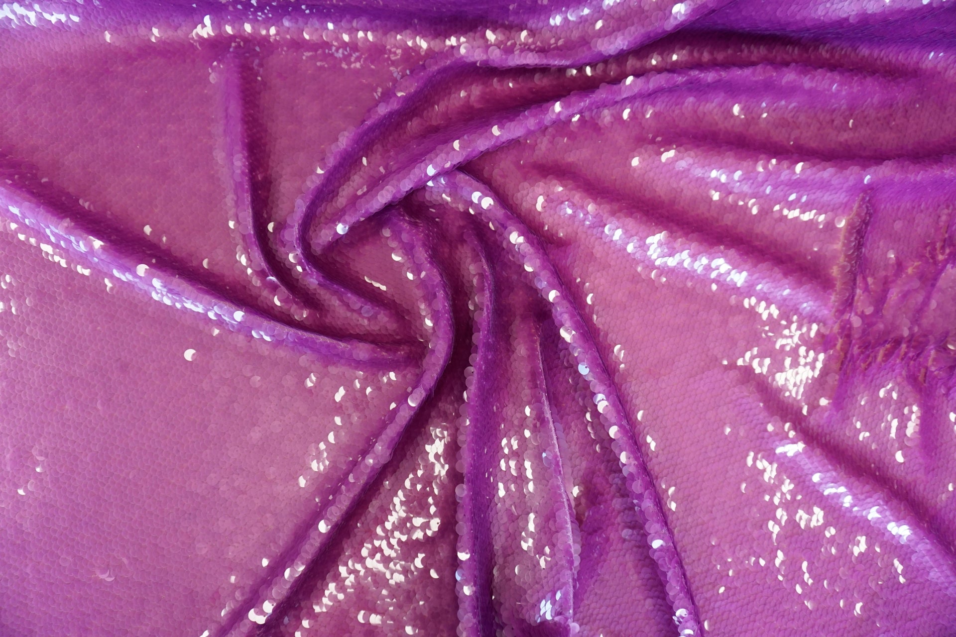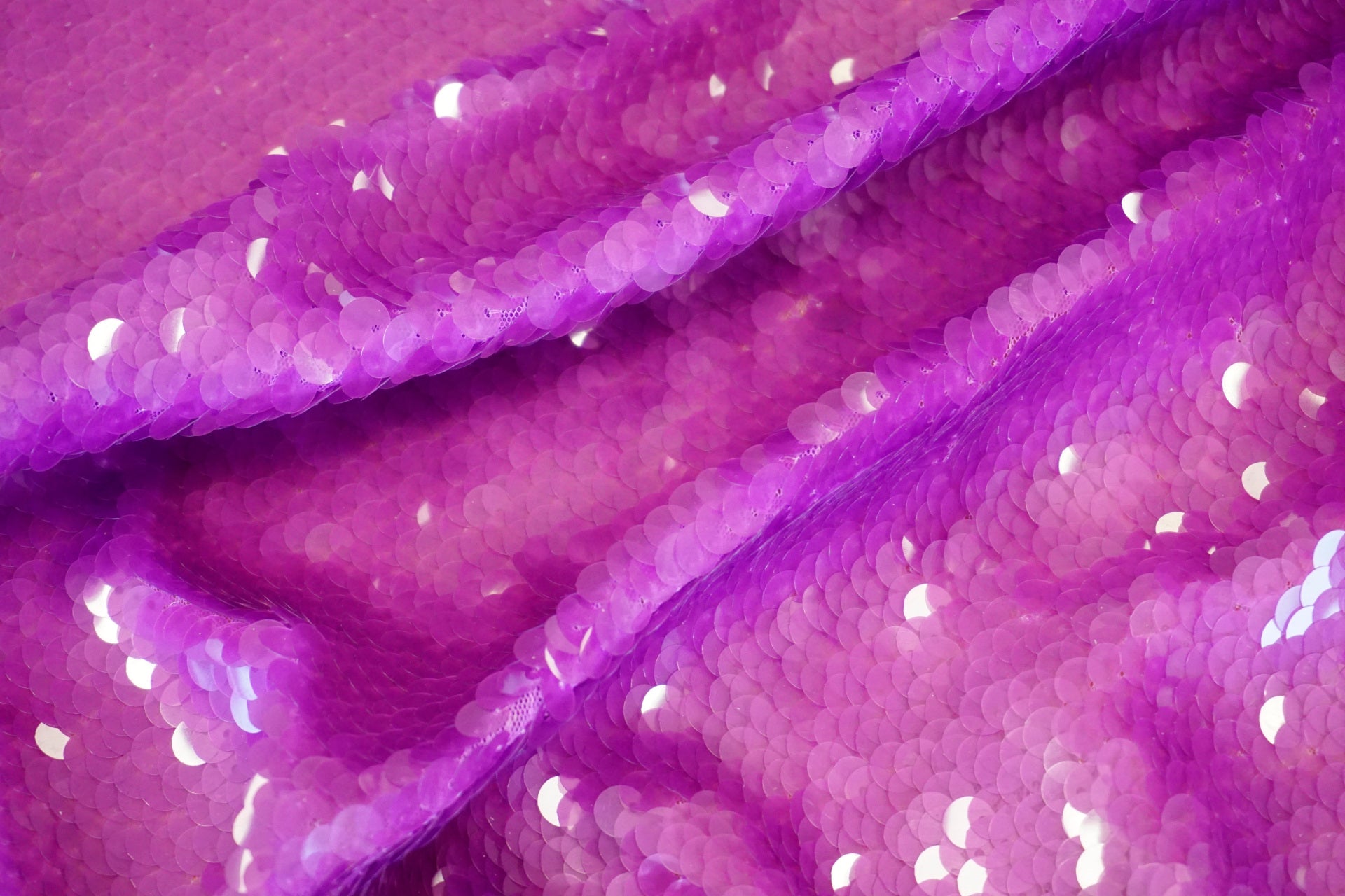 Dieser ausdrucksstarke Paillettenstoff in intensivem Lila verleiht jedem Design sofort eine luxuriöse und glamouröse Ausstrahlung. Die dicht aufgebrachten, schimmernden Pailletten reflektieren das Licht aus jedem Winkel und erzeugen ein faszinierendes Spiel aus Glanz und Bewegung – perfekt für auffällige Fashion-Pieces und besondere Anlässe.