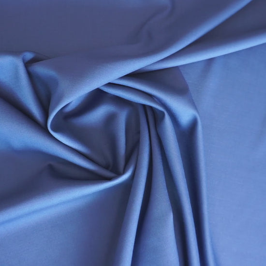 Die intensive Farbe in hellem tintenblau changiert je nach Lichteinfall und Stoffseite: mal samtig-matt, mal mit feinem Glanz – ideal, um subtile Akzente zu setzen oder Details wie Revers, Bündchen oder Taschenklappen hervorzuheben.